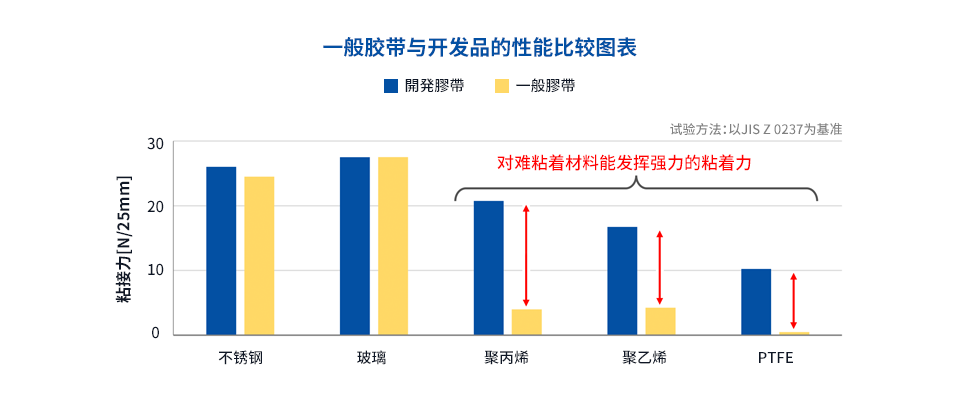 和目前的膠帶相比,此款開發(fā)膠帶不限于氟樹脂,對(duì)金屬、玻璃、PP等材料的粘接力也具有很大提升,對(duì)目前為止被普遍認(rèn)為難以粘接的材料具有良好的粘接性能,具有劃時(shí)代意義。