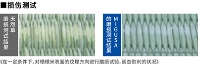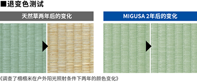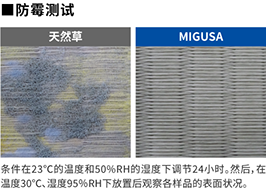 具有優(yōu)異耐用性的聚丙烯,和呈現(xiàn)天然質地的無機材料(吸濕性碳酸鈣)以絕妙比例完美搭配,誕生出積水“MIGUSA”。由于榻榻米采用天然無機材料制成,即使燃燒也不會釋放二惡英等有害物質,非常環(huán)保。