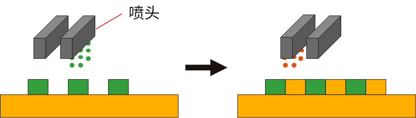 - 按需式 : 可在任意位置打印圓形、直線等形狀。無需蝕刻等工藝,有助于減少工序。
