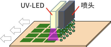Inkjet噴墨是指從噴墨頭噴嘴噴出約20μm光硬化性墨水進行印刷的方式。