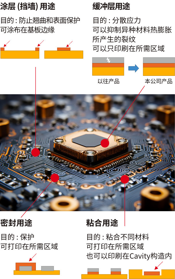 高粘度Inkjet噴墨方式可用于手機、顯示器、基板封裝等各種用途。