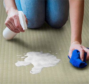 ※農(nóng)藥、煤油、嬰兒油、苯等可能會導(dǎo)致榻榻米膨脹。此外,熱水壺、鍋、熨斗和香煙也可能導(dǎo)致榻榻米融化。
